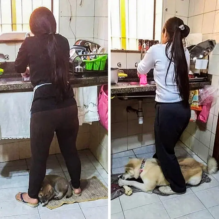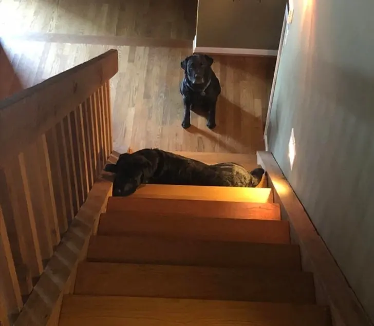 6. ฉันได้ยินเสียงน้องหมาของฉันร้องครวญคราง พอออกมาดูก็พบว่ามันถูกน้องชายของมันนอนขวางทางขึ้นบันไดอยู่