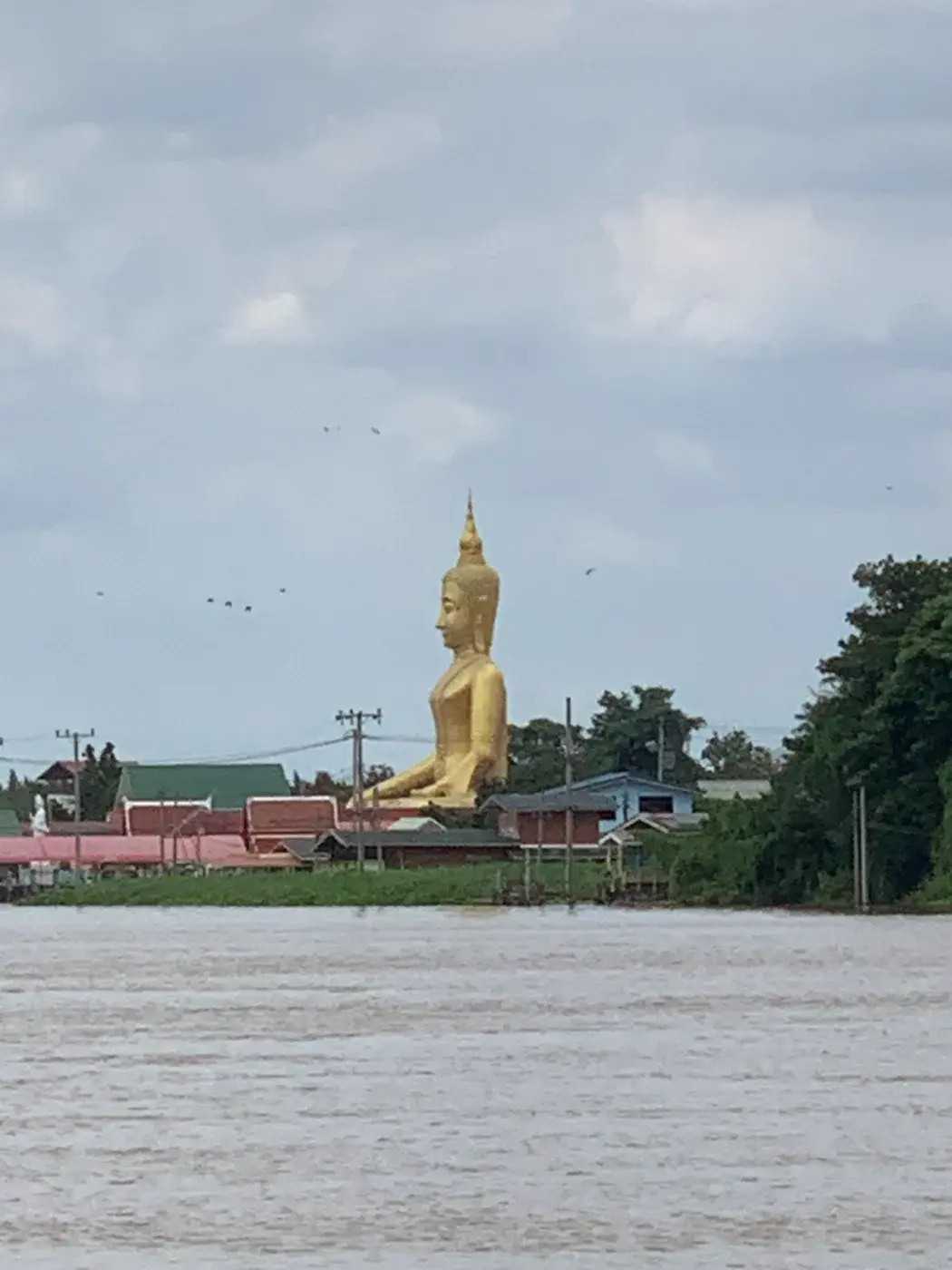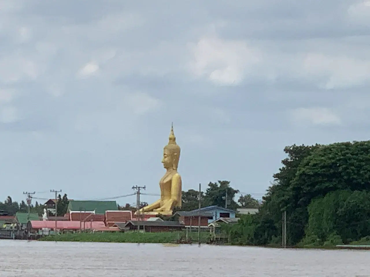 เพื่อนๆ จะได้ชมพระพุทธรูปสีทองอร่ามขนาดใหญ่ในวัดฝั่งตรงข้ามเกาะเกร็ด