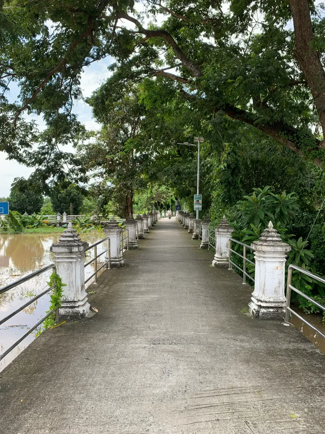 ภายในวัดปรมัยยิกาวาสวรวิหาร วัดมอญโบราณ ซึ่งเป็นวัดอันทรงคุณค่าของชาวเกาะเกร็ด มีต้นไม้ใหญ่น้อยมากมาย รวมถึงเก้าอี้ให้นักท่องเที่ยวได้นั่งชมทัศนียภาพอันงดงามของเกาะ