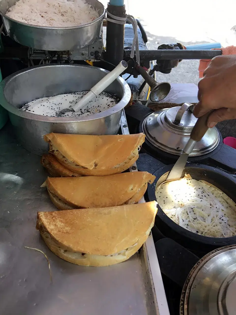 เป็นคนที่ชอบในส่วนของการทำขนม เพราะว่าขั้นตอนตั้งแต่ส่วนของการเทแป้งนั้นลงไปในพิมพ์ แต่เมื่อเรานั้นเทลงกลิ่นหอมนั้นจะกระจายลงมา และเมื่อสักพักเรานั้นจะเปิดออกมาเพื่อที่จะใส่ในส่วนของไส้ ความอร่อย หอมโรยด้วยน้ำตาลในตอนสุดท้าย พับเข้าหากันให้เป็นในส่วนของครึ่งวงกลม สีสันเหมือนกัน ในส่วนของการที่เรานั้นทานหากว่ามีในส่วนของแป้งที่มากกว่าหรือว่าใส่แล้วหนาเกินไปนั้นจะไม่ค่อยอร่อย แต่หากว่าเรานั้นทำแล้ว มือของเรานั้นมีความเหมาะสมจะอร่อย ชอบมากในการมอง แต่เรานั้นไม่ได้ซื้อเยอะ จะซื้อเพียงสองชิ้นเท่านั้น แต่ว่าเน้นในเรื่องของการมอง เพราะว่าลุงนั้นทำแบบมืออาชีพมาก