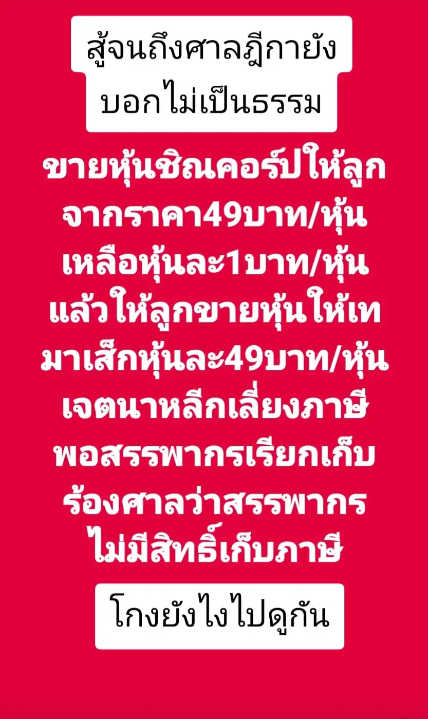 เขาก็เลยถามกันให้แซดว่า ถ้าเข้าข่ายขายนอกตลาดหลักทรัพย์ ทำไมไม่ได้เสียภาษีสำหรับกำไรบานตะเกียงประมาณ 16,000 ล้านบาทนี้ (329,260,000 คูณกำไรต่อหุ้น 48.25)