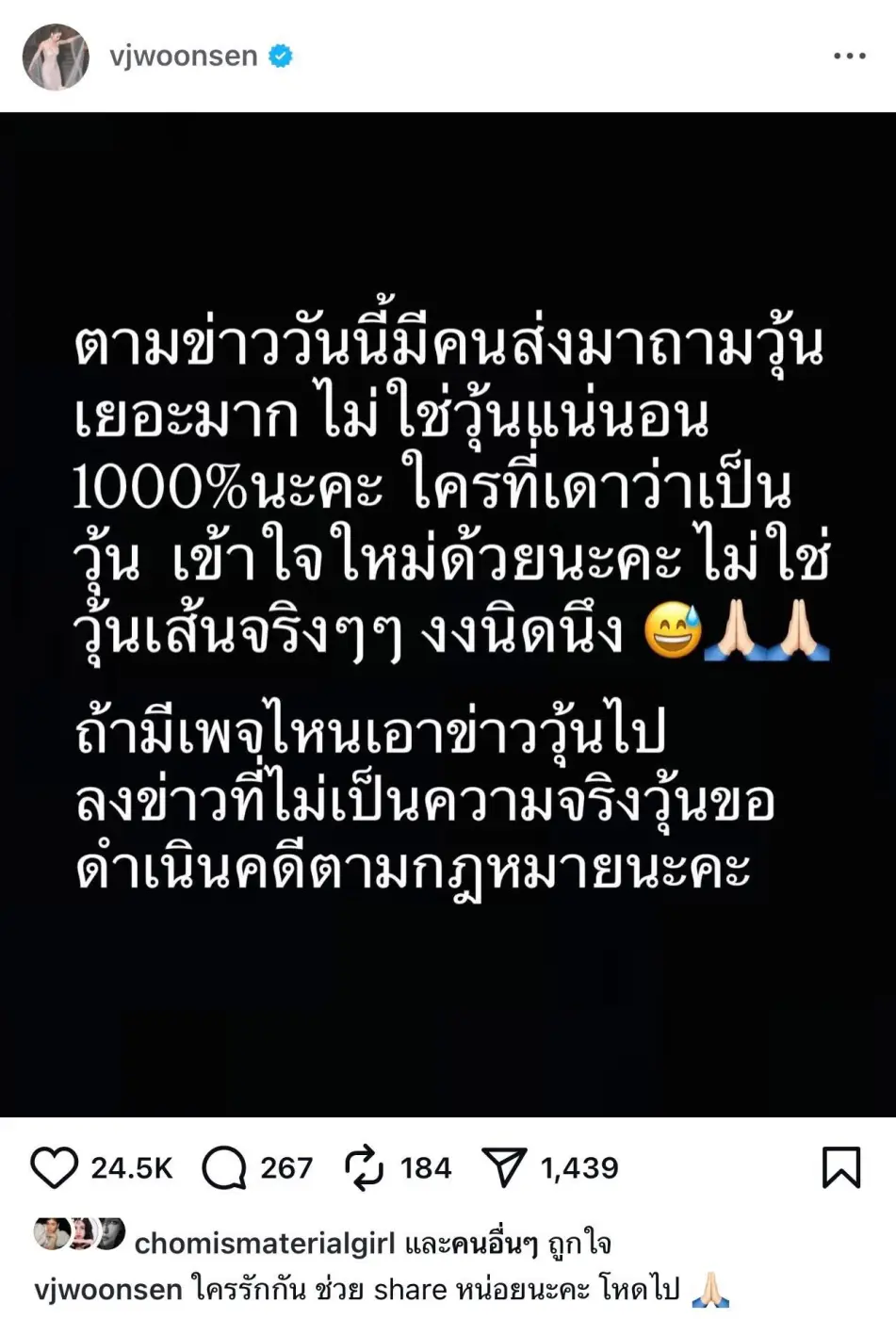 🤨สืบเนื่องจากเพจดังแฉซุปตาร์ตัวแม่ชวนเพื่อนลงทุน สุดท้ายเบี้ยวหนี้กว่า 400 ล้านบาท หลายคนคาดเดาไปที่ วุ้นเส้น วิริฒิพา ร้อนถึงหูเจ้าตัวรีบออกโรงโพสต์ชี้แจงแบบด่วนจี๋ ยืนยันไม่เป็นความจริง ไม่ใช่ตน 1000%