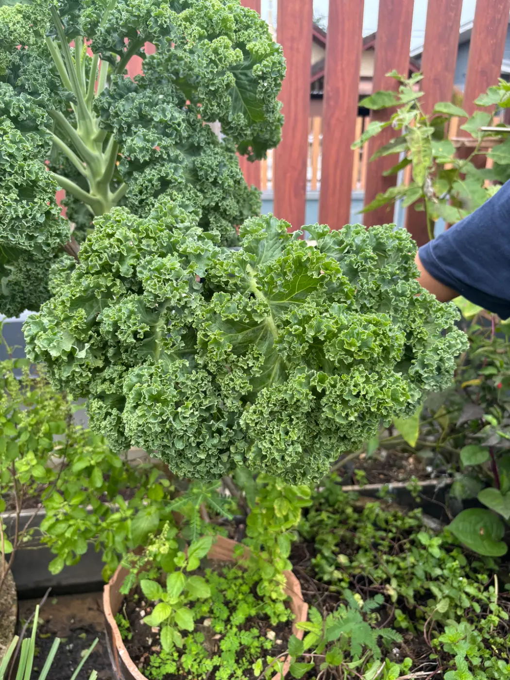 ที่หน้าบ้านเราจะมีมุมปลูกผักเล็ก ๆ ซึ่งจอยชอบเดินดูต้นไม้ทุกเช้าอยู่แล้ว พอเคลเริ่มโต แตกใบขึ้นมาเรื่อย ๆ จอยก็บอกเลยว่า “แบบนี้ต้องปลูกเพิ่มอีกต้นแล้วแหละ” เพราะมันคุ้มจริง ๆ เก็บใบล่างกินได้เรื่อย ๆ ไม่ค่อยมีแมลงกวน แล้วใบก็กรอบแข็งแรง พอเอาไปทำอาหารคือดีมาก ๆ