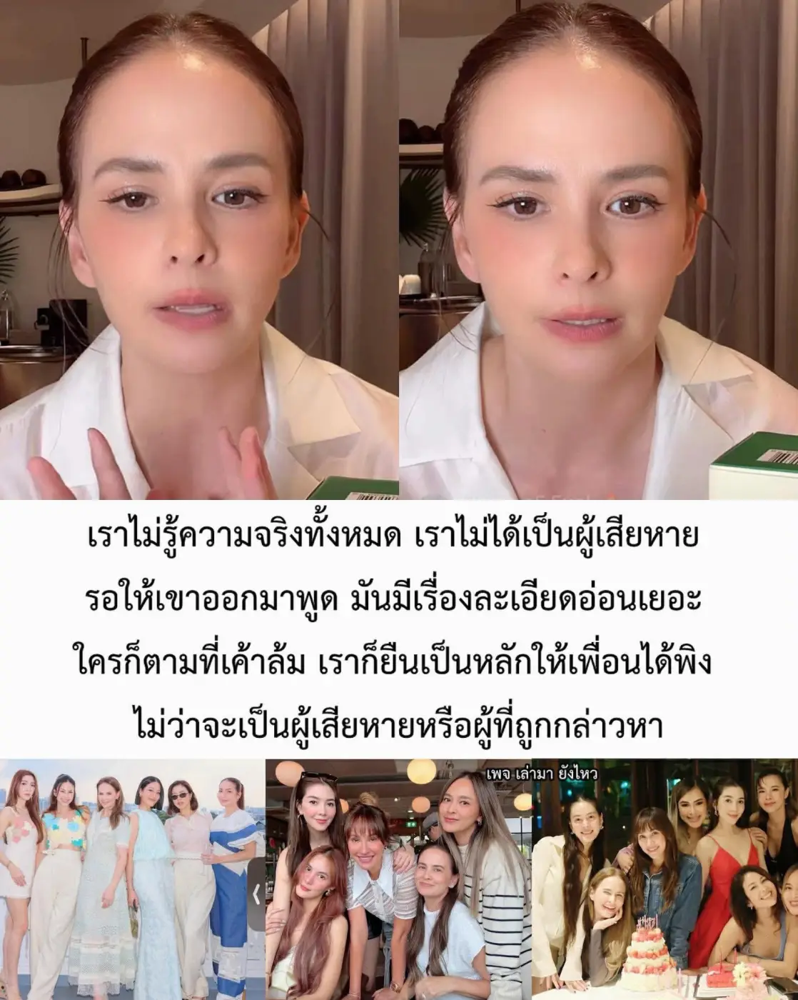 “เราไม่รู้ความจริงทั้งหมด และเราไม่ได้เป็นผู้เสียหาย ต้องรอให้เขาออกมาพูดเอง เรื่องนี้ละเอียดอ่อนมาก แต่ไม่ว่าใครล้ม เราจะยืนเป็นหลักให้เพื่อนได้พิงเสมอ ทั้งผู้เสียหายและผู้ถูกกล่าวหา”