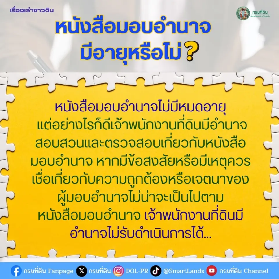 เมื่อสักครู่ ดิฉันได้อ่านข้อมูลจาก “กรมที่ดิน” ที่ออกมาชี้แจงเกี่ยวกับประเด็นเรื่อง หนังสือมอบอำนาจในการทำธุรกรรมที่ดิน ซึ่งหลายท่านอาจเคยสงสัยว่า เอกสารประเภทนี้มีวันหมดอายุหรือไม่