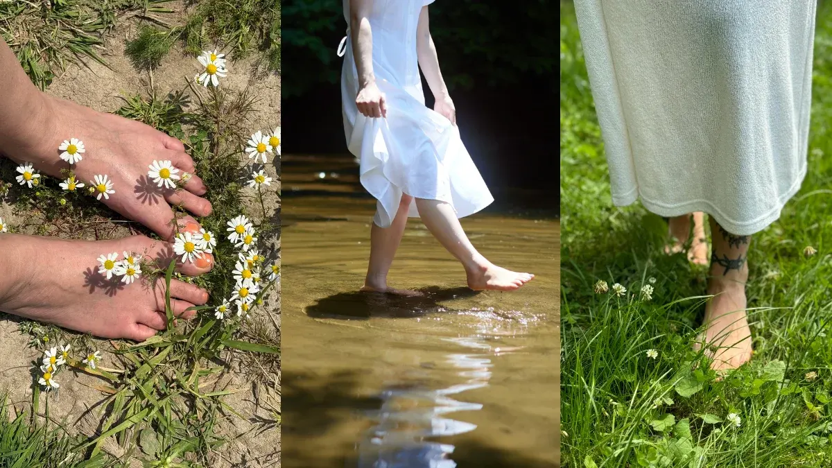 1.เดินเท้าเปล่า การเดินเท้าเปล่าบนพื้นผิวธรรมชาติ ให้สนามพลังจากผืนดินช่วยสลายไฟฟ้าสถิตที่เกิดจากใช้เครื่องมือสื่อสารเป็นเวลานาน จนสะสมอยู่ในร่างกาย ตามหลักของแพทย์แผนจีน จุดสะท้อนเท้ามีผลต่ออวัยวะส่วนต่าง ๆ ของร่างกาย การเดินเท้าเปล่าสัมผัสผืนดินจึงเป็นการนวดจุดสะท้อนเท้าสำคัญ ๆ ไปในตัว การเดินเท้าเปล่ายังมีฤทธิ์ต้านการอักเสบ (Anti-inflammatory) จึงลดความเจ็บปวดได้อย่างเห็นผล มีส่วนช่วยให้คุณภาพการนอนหลับดีขึ้น ช่วยในการปรับปรุงการควบคุมระดับน้ำตาลในเลือดให้ดีขึ้น ป้องกันการสูญเสียความหนาแน่นของมวลกระดูก ลดความเครียด ปรับปรุงสภาวะอารมณ์