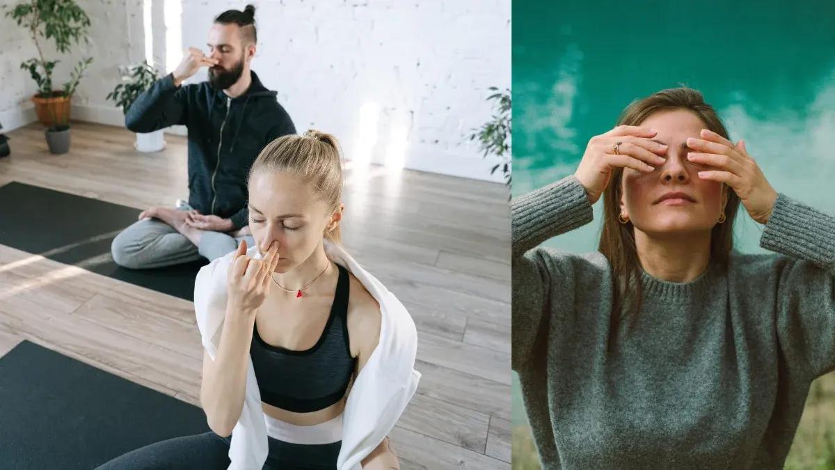 - เครียดง่าย ปวดหัวบ่อย ควรฝึกหายใจสลับรูจมูก :นั่งในท่าที่สบาย หลับตา ใช้นิ้วโป้งขวาปิดรูจมูกขวา หายใจเข้าลึกผ่านรูจมูกซ้าย ประมาณ 10 วินาที จากนั้นใช้นิ้วปิดรูจมูกซ้าย เปิดรูจมูกขวาแล้วหายใจออกผ่านรูจมูกขวา ประมาณ 20 วินาที แล้วหายใจเข้าทางรูจมูกขวา ประมาณ 10 วินาที สลับใช้นิ้วปิดรูจมูกขวา เปิดรูจมูกซ้าย หายใจออก 20 วินาที ฝึกซ้ำแบบนี้ 3-7 รอบ