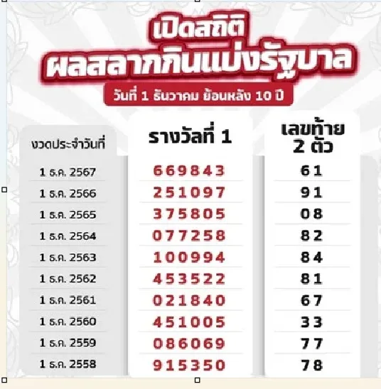 เผยสถิติการออกสลากกินแบ่งรัฐบาล ย้อนหลัง 10 ปี..งวดวันที่ 1 ธันวาคม 68