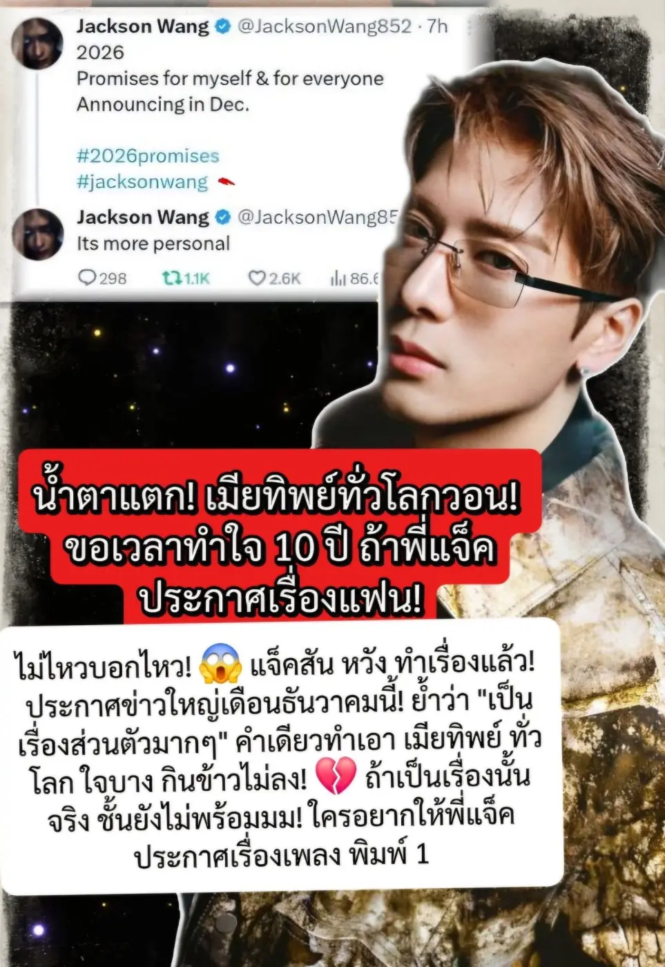 ร้องไห้รอ พี่แจ็คสัน หวัง (Jackson Wang) ทิ้งระเบิดลูกใหญ่ลง X! 💥 ประกาศว่าเดือนธันวาคมนี้จะเปิดเผยเรื่องสำคัญที่เป็น "เรื่องส่วนตัวมากๆ" (It's more personal)
