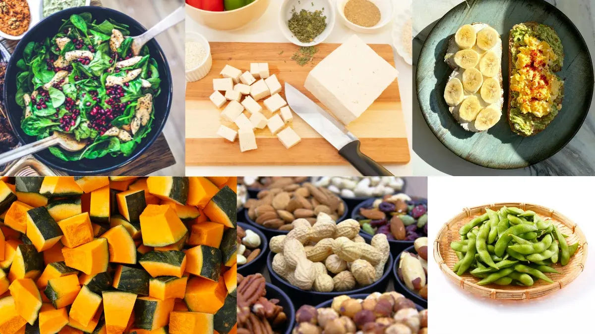 แหล่งแมกนีเซียม : ฟักทอง ผักโขม ผักโขมสวิส คะน้า ถั่วเหลือง เต้าหู้ ข้าวกล้อง ข้าวโอ๊ต กล้วย อะโวคาโด ลูกแพร์หนาม มันฝรั่งอบที่มีเปลือก เมล็ดฟักทอง เมล็ดเจีย เมล็ดทานตะวัน อัลมอนด์ เม็ดมะม่วงหิมพานต์ ถั่วลิสง ถั่วดำ ถั่วแระญี่ปุ่น ถั่วบราซิล ปลาแซลมอน ปลาทู กุ้ง