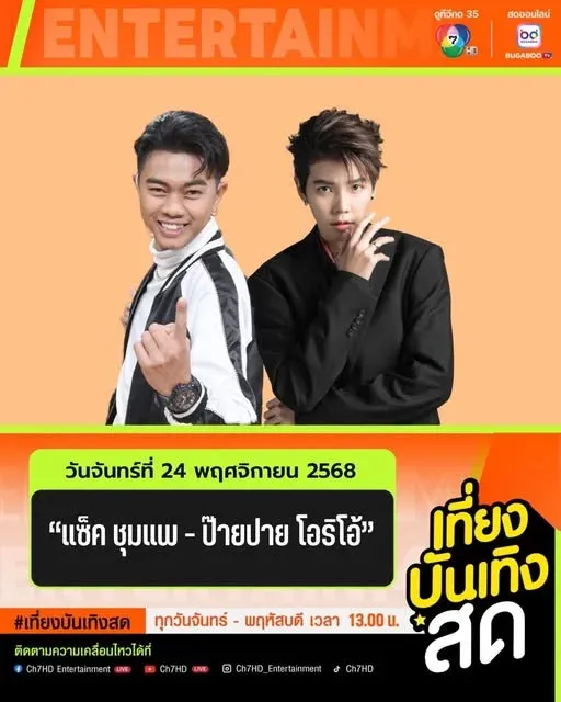 เที่ยงบันเทิงสด วันนี้พบกับ แซ็ค ชุมแพ และ ป๊ายปาย โอริโอ้