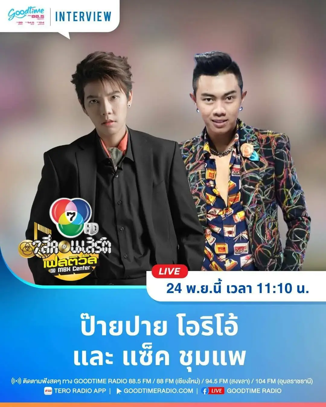 🎙 Goodtime Interview เตรียมพบกับความสนุกของ 2 ศิลปินลูกทุ่งอินดี้ "ป๊ายปาย โอริโอ้ และ แซ็ค ชุมแพ" ที่เตรียมมาสร้างสีสันให้กับ "7 สีคอนเสิร์ตเฟสติวัล @ THE NINE CENTER TIWANON" แบบจัดเต็ม!