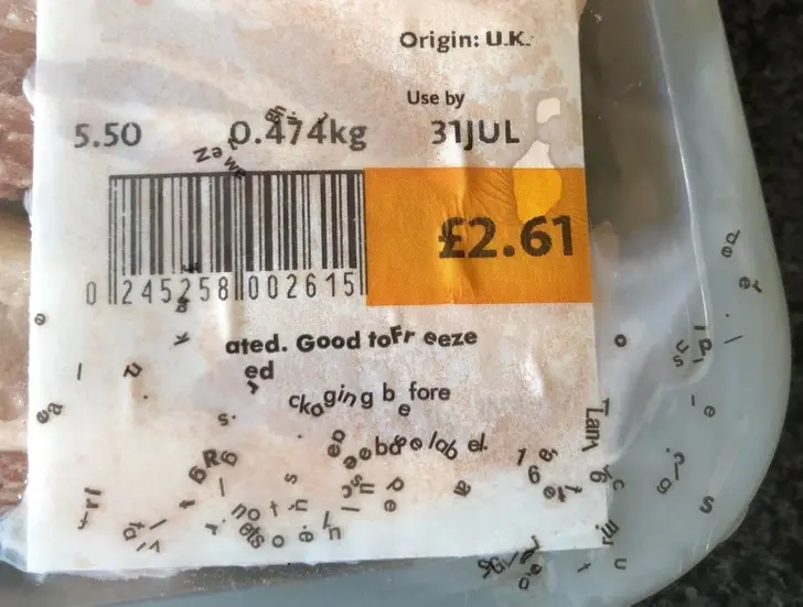 6. แค่เอาเนื้อไปละลายน้ำแข็ง ตัวอักษรบนป้ายราคาก็ละลายออกมาเพียบเลย ตอนนี้บนโต๊ะของฉันมีแต่ตัวอักษรเกลื่อนโต๊ะไปหมดเลย