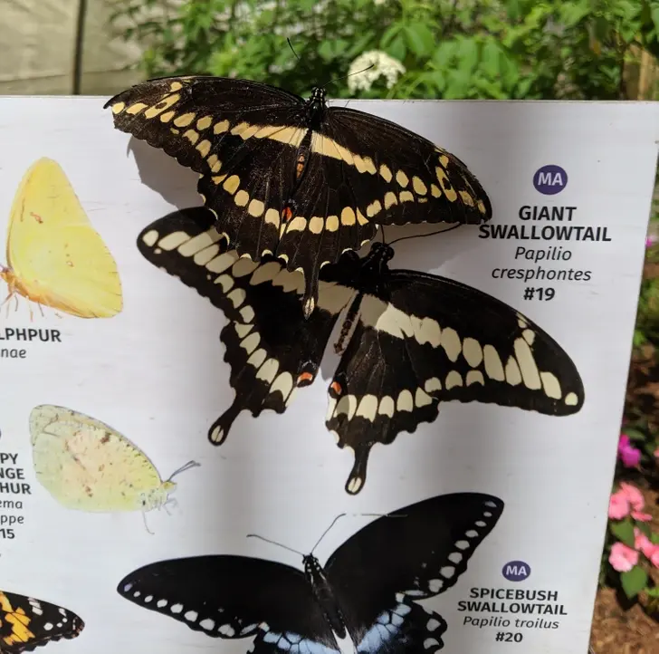 16. ผีเสื้อหางติ่งยักษ์ตัวนี้ได้บินลงมาเกาะข้างรูปผีเสื้อพันธุ์ของมันพอดีเลย !