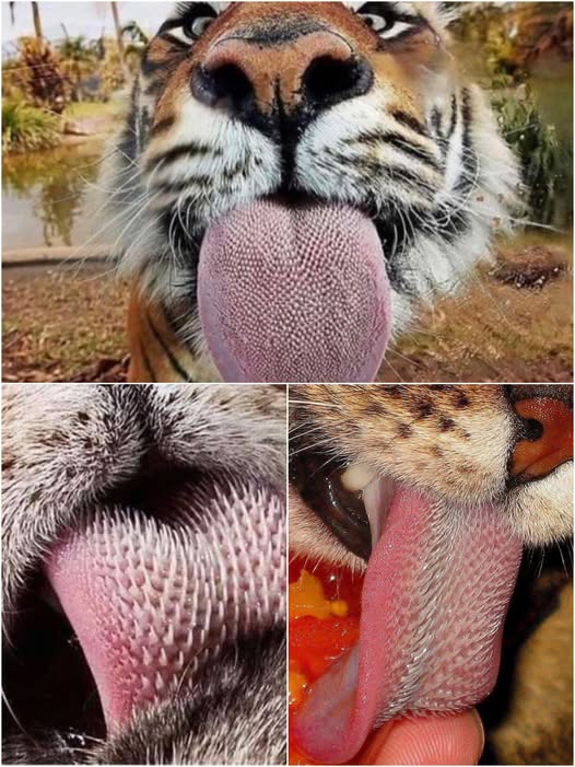 ด้วยความสากนี้ เสือสามารถขูดเนื้อที่ติดอยู่ตามซอกกระดูกของเหยื่อได้อย่างสะอาดหมดจด ราวกับมีเครื่องมือเฉพาะติดตัวมาแต่กำเนิด หลังจากล่าเหยื่อเสร็จ มันไม่เพียงแค่ฉีกเนื้อ แต่ยังเลียจนกว่าชิ้นส่วนสุดท้ายจะหลุดออกจากกระดูก นอกจากนี้ ตุ่มหนามยังทำงานคล้ายหวีคม ๆ ที่ช่วยให้เสือเลียทำความสะอาดขนของตนเองได้อย่างมีประสิทธิภาพ ขจัดเศษดิน เศษขน หรือสิ่งสกปรกที่ติดอยู่ตามลำตัว เหมือนกับวิธีที่แมวบ้านเลียขน—แต่ทรงพลังและรุนแรงกว่ามาก