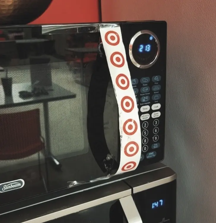 11. ที่จับของไมโครเวฟพังและนี่คือทางออกที่ดีที่สุดที่พวกเขาทำได้