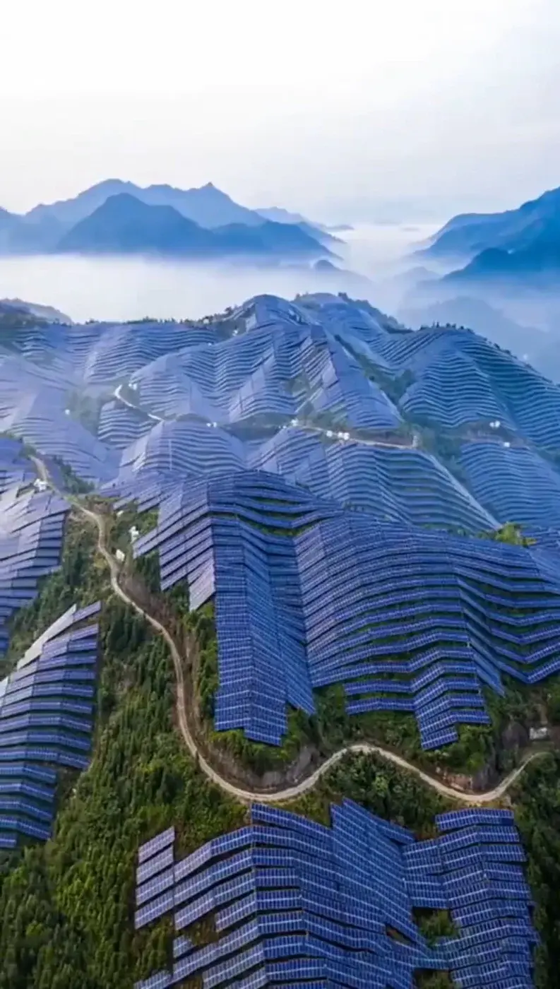 ในมุมมองจากที่สูง ภาพของแผงโซลาร์เซลล์ที่เรียงรายบนสันเขาดูคล้ายคลื่นโลหะเงาวับไหลไปตามลวดลายของภูมิประเทศ เป็นภาพที่ผสานความงดงามของธรรมชาติเข้ากับนวัตกรรมพลังงานสะอาดได้อย่างลงตัว และกลายเป็นอีกหนึ่งสัญลักษณ์ของการเดินหน้าสู่อนาคตพลังงานสีเขียวของประเทศจีนอย่างแท้จริง.
