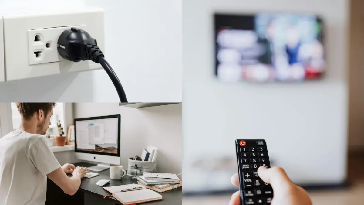 เครื่องใช้ไฟฟ้าที่ “ควรถอดปลั๊กทุกครั้งหลังไม่ใช้” ได้แก่ โทรทัศน์ พัดลม เครื่องรับวิทยุ เครื่องเล่นวีดิโอ ส่วนใหญ่จะมีรีโมทคอนโทรลอำนวยความสะดวก หากปิดเครื่องแล้ว แต่อุปกรณ์ควบคุมอิเล็กทรอนิกส์ยังใช้พลังงานเพื่อรอรับคำสั่งจากรีโมทคอนโทรล ถ้าไม่ถอดปลั๊กออกเครื่องใช้ไฟฟ้าเครื่องนั้นยัง “กินไฟ” อยู่ จึงควรถอดปลั๊กทุกครั้งที่เลิกใช้งาน เพื่อการประหยัดพลังงาน ช่วยป้องการเกิดอัคคีภัย และช่วยลดการใช้พลังงานและค่าไฟฟ้าได้อย่างง่าย ๆ