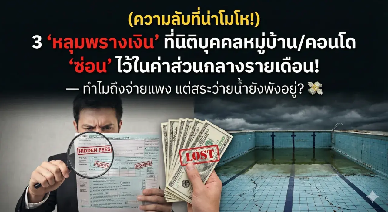 (ความลับที่น่าโมโห!) 3 'หลุมพรางเงิน' ที่นิติบุคคลหมู่บ้าน/คอนโด 'ซ่อน' ไว้ในค่าส่วนกลางรายเดือน! — ทำไมถึงจ่ายแพง แต่สระว่ายน้ำยังพังอยู่? 💸