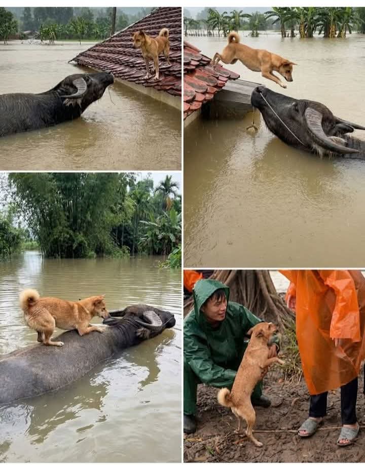 ในภาวะที่น้ำเชี่ยวโหมกระหน่ำ และทุกชีวิตกำลังดิ้นรนเอาตัวรอด การได้เห็นสัตว์สองชนิดที่ปกติแทบไม่มีโอกาสเข้าใกล้กัน กลับยื่นมือ—or ยื่น “หลัง” ให้กันในช่วงเวลาคับขันแบบนี้ มันสะเทือนใจจริง ๆ 🐃🐶💧