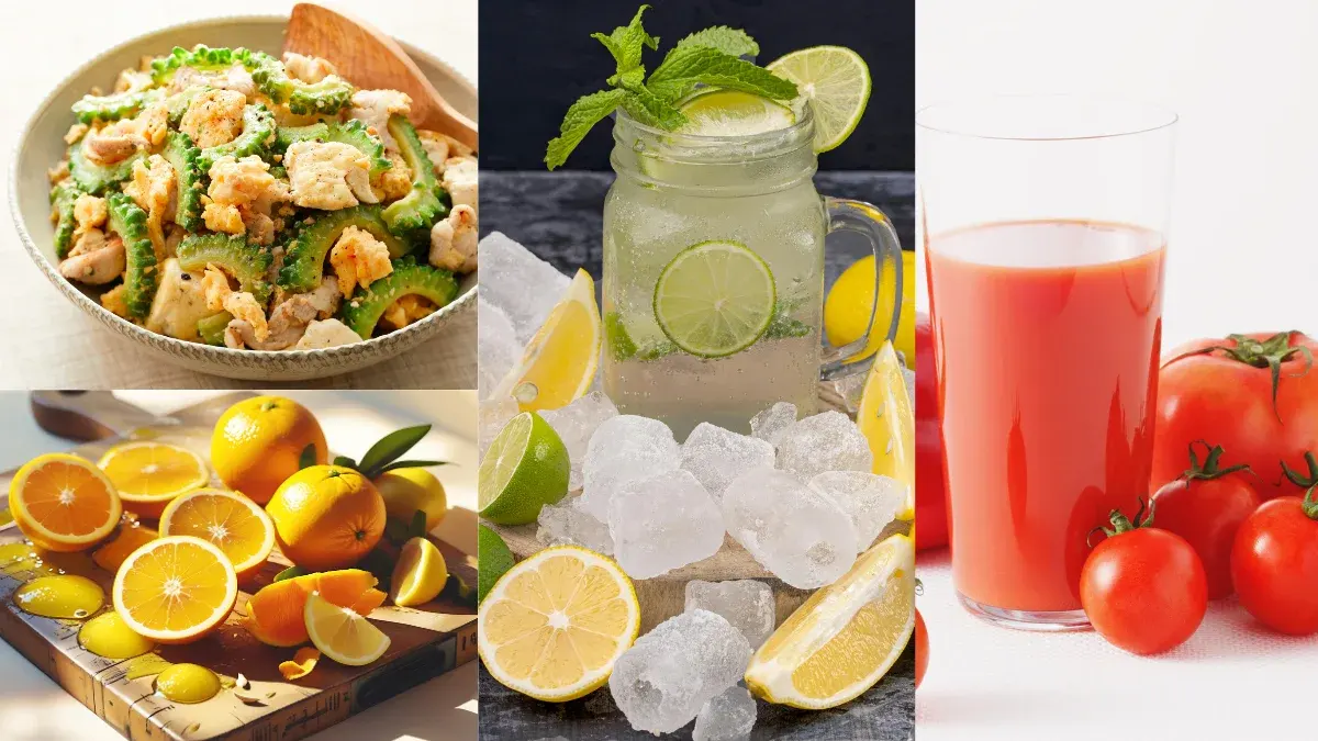 เครื่องดื่มที่แนะนำ : น้ำมะนาว น้ำส้ม น้ำมะขามป้อม น้ำมะเขือเทศ น้ำสับปะรด น้ำกระเจี๊ยบ