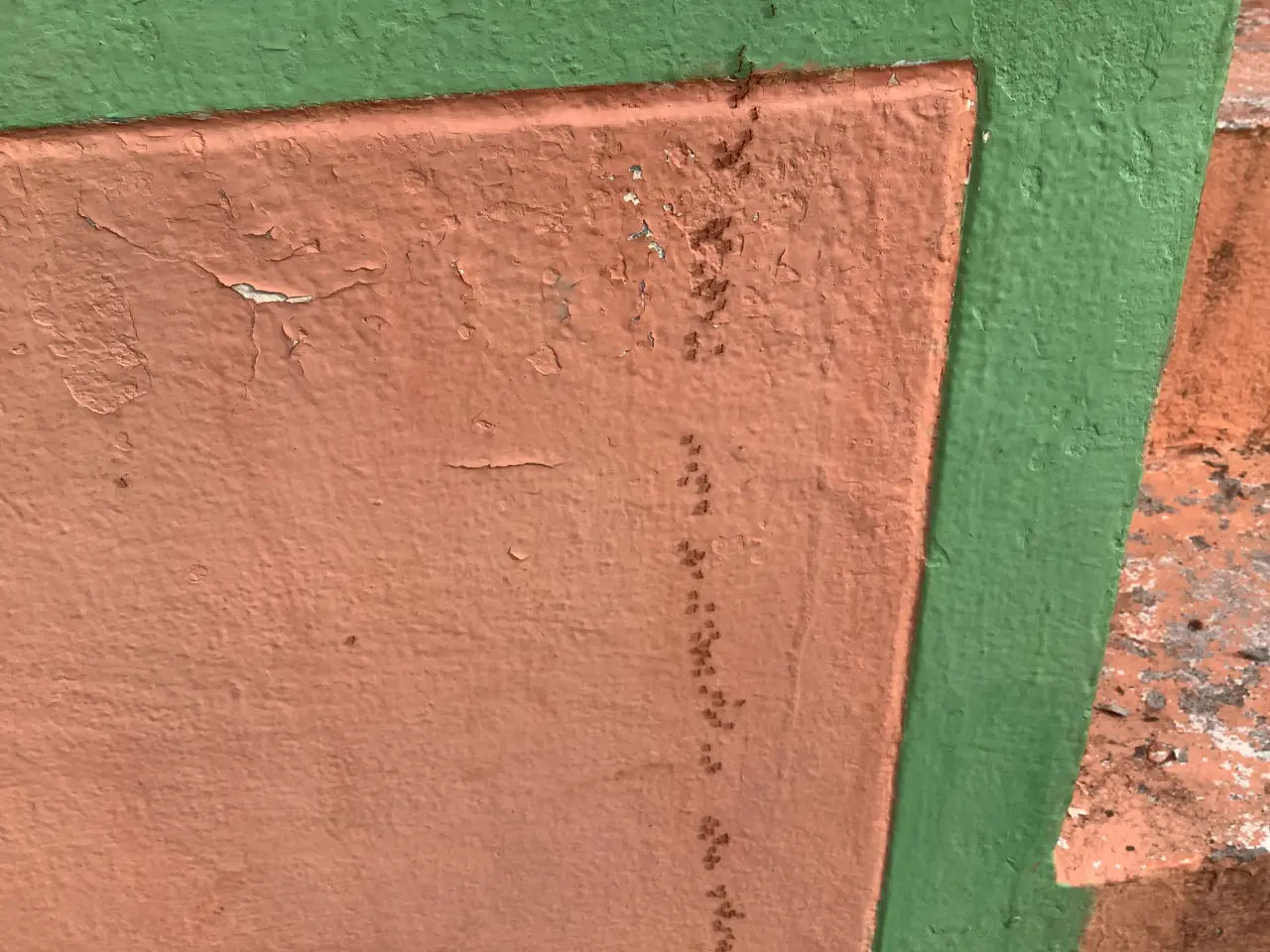 สีเขียวที่เรานั้นมองกับสีส้ม แต่สายตาของเด็กนั้นเขามีรายละเอียดที่มากกว่าคือเขานั้นพยายามในการที่จะถ่ายเจ้ามดน้อยที่เดินแถวอย่างเป็นระเบียบ