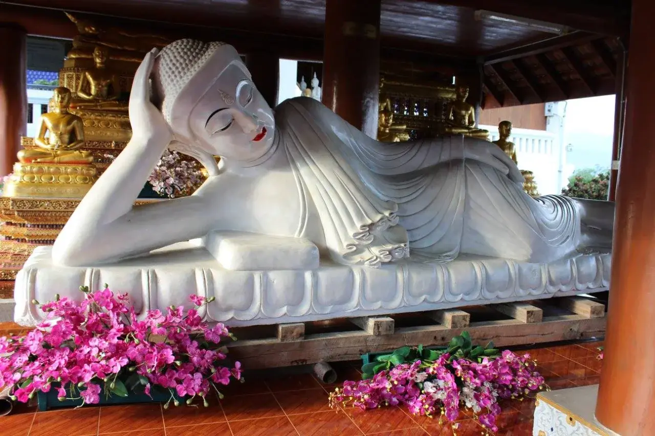 เรานั้นเดินชมมาถึงในส่วนของที่นี่ ด้านหลังของวัดที่มีเจ้าไก่หลากหลายตัวนั้นยืนรอด้านหน้า เราเห็นในส่วนของพระพุทธเจ้านั้นนอนในท่าของปรินิพพาน ซึ่งถือว่าเป็นท่าที่ยากพอสมควร พระองค์นั้นนอนปรินิพพานในท่านี้ และนำพาในส่วนของความโศกเศร้ามาให้กับทุกพระอรหันต์ เพียงการสิ้นสุดชีวิตของพระผู้เป็นเจ้า จึงนำมาในส่วนของคำสั่งสอนนั้นนำมาใช้ได้มาก