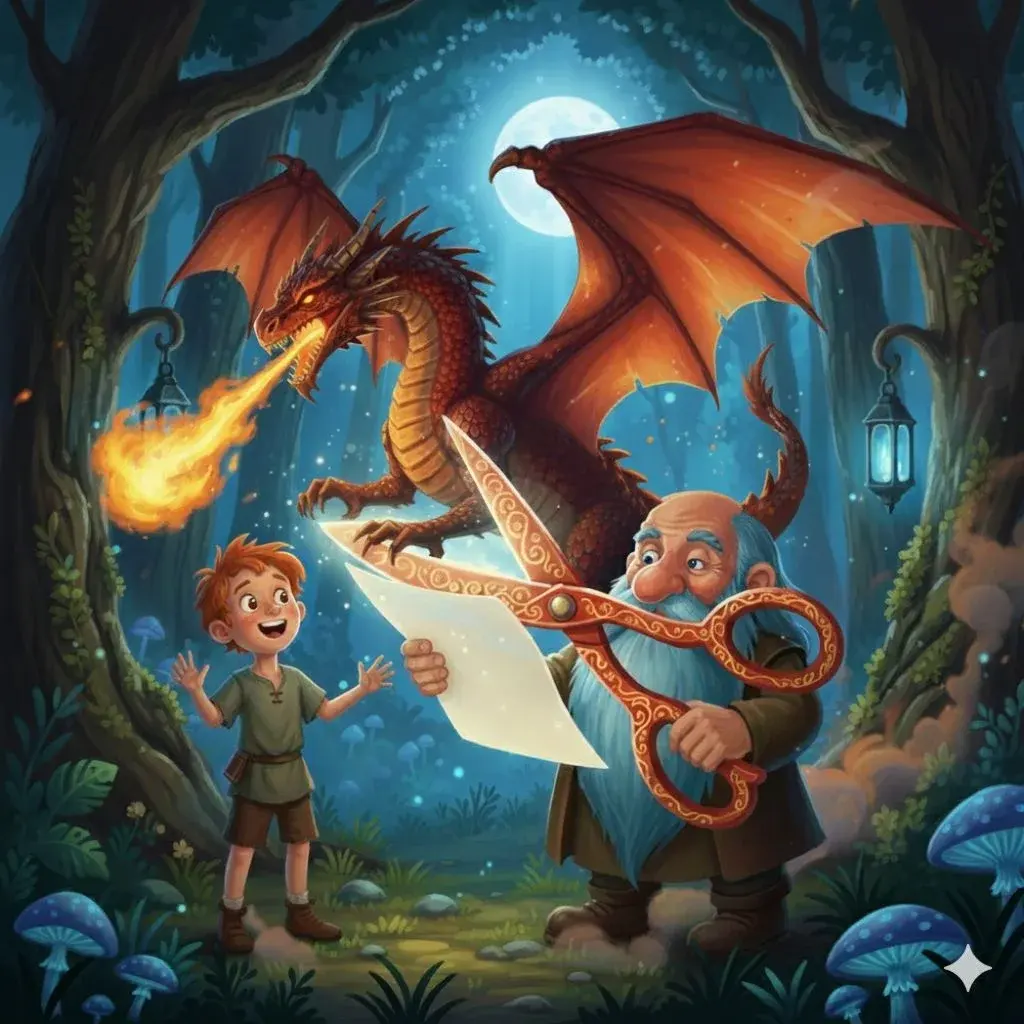 เขาเริ่มสร้างสรรค์สิ่งที่ไม่ธรรมดา เช่น ม้าบิน หรือยานพาหนะต่าง ๆ จนกระทั่งเขาตัดสินใจครั้งสำคัญที่นำมาซึ่งปัญหาใหญ่ นั่นคือการตัดรูป มังกรไฟตัวมหึมา! มังกรวิเศษได้ปรากฏขึ้นและสร้างความวุ่นวายอย่างควบคุมไม่ได้ ด้วยฤทธิ์เดชที่น่าเกรงขาม ทำให้เด็กชายตระหนักได้ว่าพลังที่เขามีนั้นสามารถสร้างหายนะได้เช่นกัน
