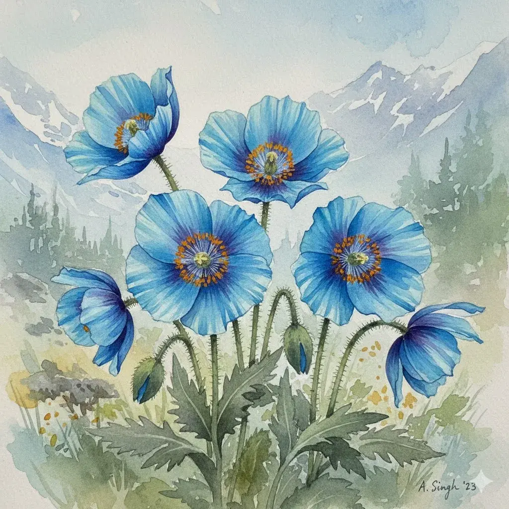 พวกที่เรามักได้ยินชื่อบ่อยก็มี Meconopsis grandis กับ Meconopsis betonicifolia (ที่เมื่อก่อนเรียกว่า Meconopsis baileyi) ทั้งสองชนิดนี้เป็นตัวแทนของบลูป๊อปปี้หิมาลัยที่คนรู้จักมากที่สุด ถิ่นกำเนิดของมันก็ตรงตามชื่อเลย — อยู่แถวเทือกเขาหิมาลัยยาวไปถึงยูนนาน ภูฏาน เนปาล และอินเดียตอนตะวันออกเฉียงเหนือ เรียกง่าย ๆ ว่าอยู่ในโลกที่ทั้งเย็น ทั้งชื้น ทั้งสวยแบบเอ็กซ์ตรีม