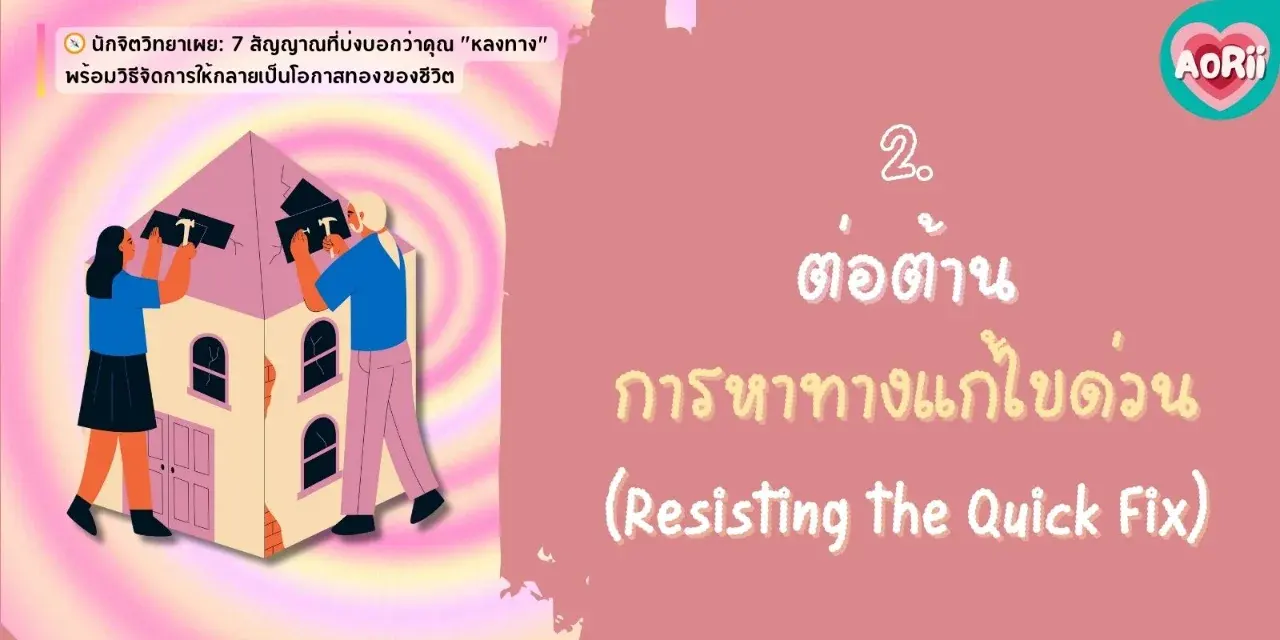 การหาทางแก้ไขด่วนคือปฏิกิริยาอัตโนมัติของสังคมที่เน้นการทำงานหนัก (Grind Culture) ที่บอกว่าคุณต้อง "ทำอะไรบางอย่าง" ทันทีเพื่อก้าวออกจากความเจ็บปวดหรือความสับสน การต่อต้าน หมายถึง การยอมรับว่า คำตอบที่แท้จริงต้องใช้เวลา