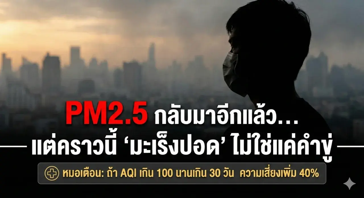 “PM2.5 กลับมาอีกแล้ว… แต่คราวนี้ ‘มะเร็งปอด’ ไม่ใช่แค่คำขู่ — หมอเตือน: ถ้า AQI เกิน 100 นานเกิน 30 วัน ความเสี่ยงเพิ่ม 40%”