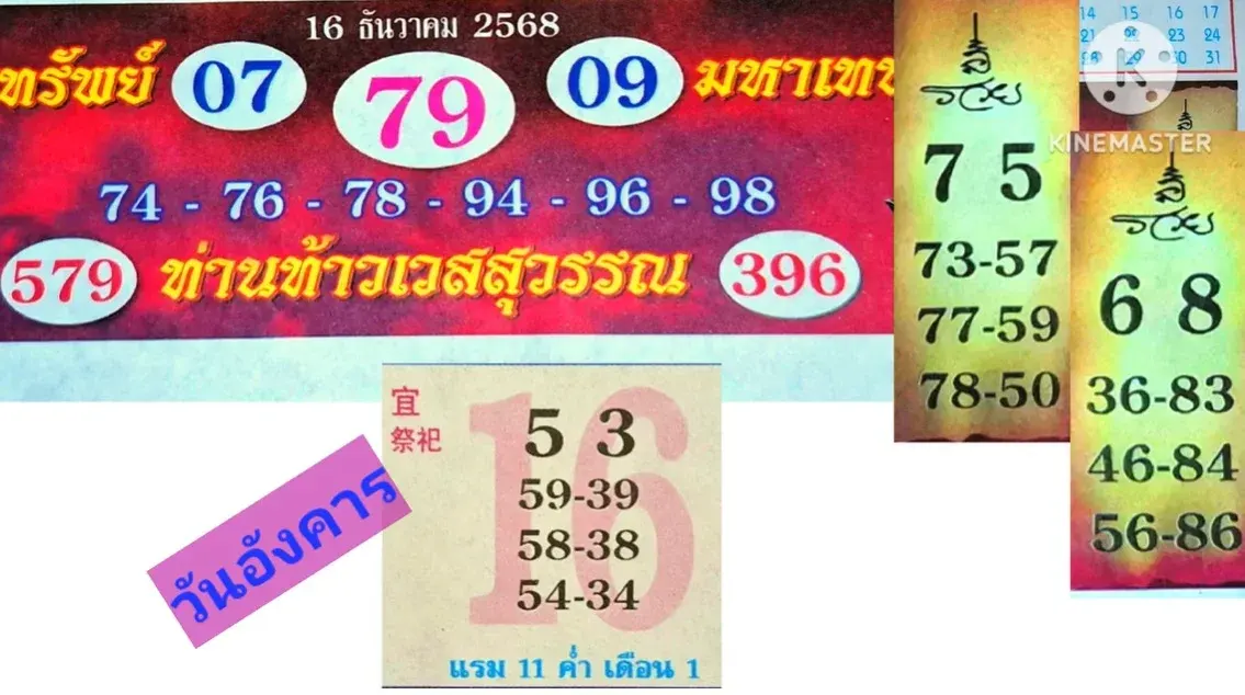 โดยแนวทางลอตเตอรี่ สำหรับ ‘ปฏิทินท่านท้าวเวสสุวรรณ’ งวดวันที่ 16/12/68 มีดังนี้
