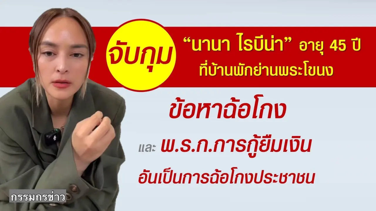 ด่วน ตำรวจ ปอศ. นำกำลังเจ้าหน้าที่บุกจับ "นานา ไรบีน่า" ที่บ้านพักย่านพระโขนง หลังมีผู้เสียหายแจ้งความเอาผิดถูกโกงเงิน ก่อนถูกคุมตัว