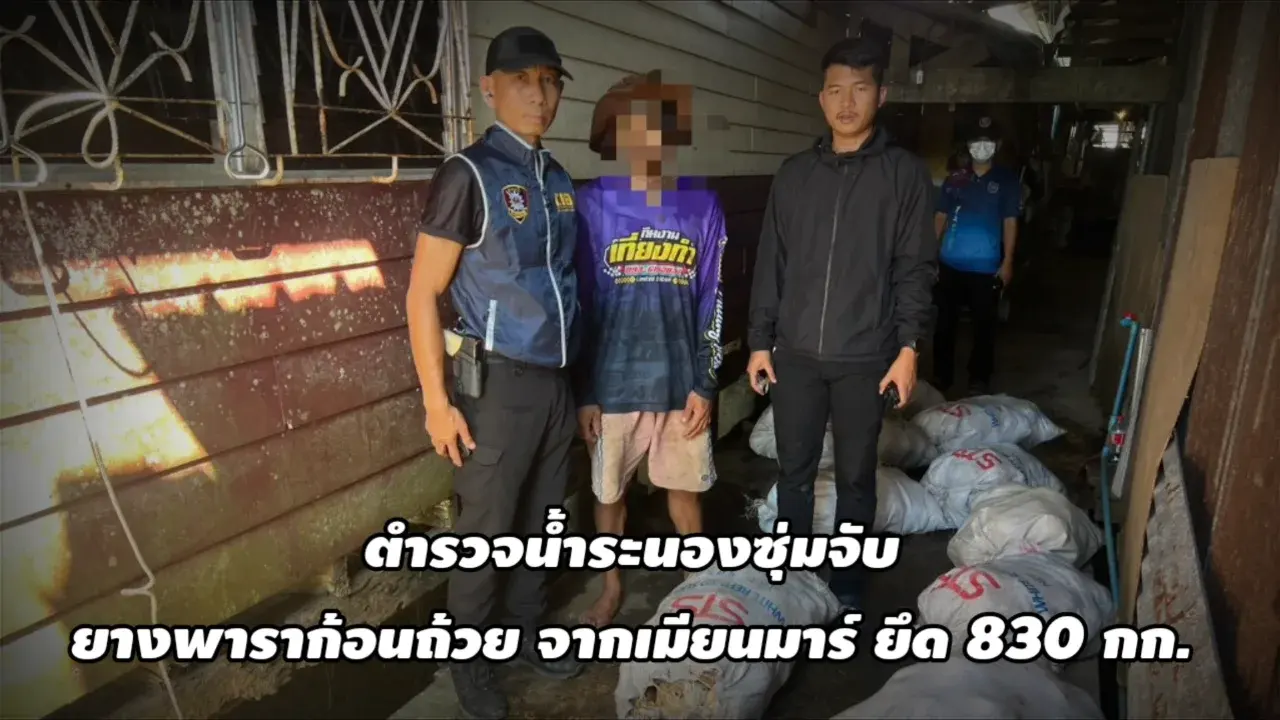 ตำรวจน้ำระนองซุ่มจับเรือหางยาว ลอบขน “ยางพาราก้อนถ้วย” จากเมียนมาร์ 830 กก. เข้าประเทศไทย คุมตัวสอบสวน