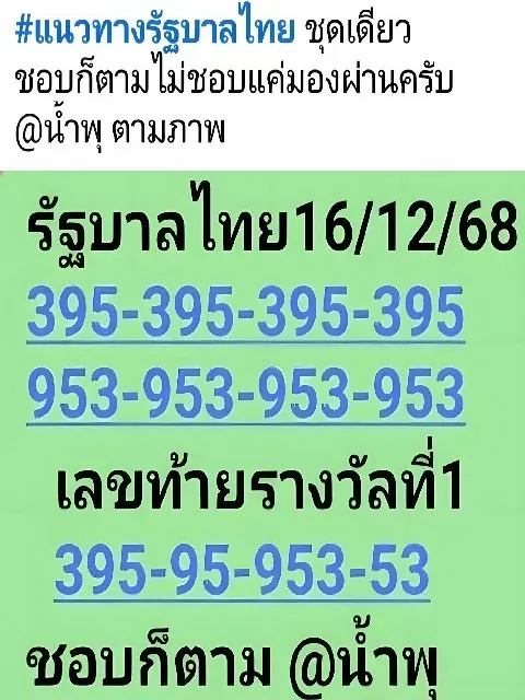 สำหรับแนวทางข้อมูลสลากกินเเบ่งรัฐบาล หวยรัฐบาลไทย ชุด 3 ตัว, 2 ตัว บนและล่าง นั้นมีเลขเด็ดให้คอหวยได้ตามลุ้นกัน พี่น้องคอหวยท่านไหนชื่นชอบหรือโดนใจก็มาเอาไปเสี่ยงโชคกันได้เลย ส่วนท่านไหนที่ไม่ชอบก็ผ่านไปก่อนเลยจ้า.....