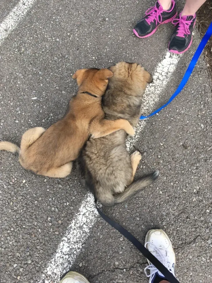 19. สุนัขของเพื่อนฉันกำลังกอดให้กำลังใจกันกับสุนัขของฉัน ก่อนที่จะไปหาหมอ