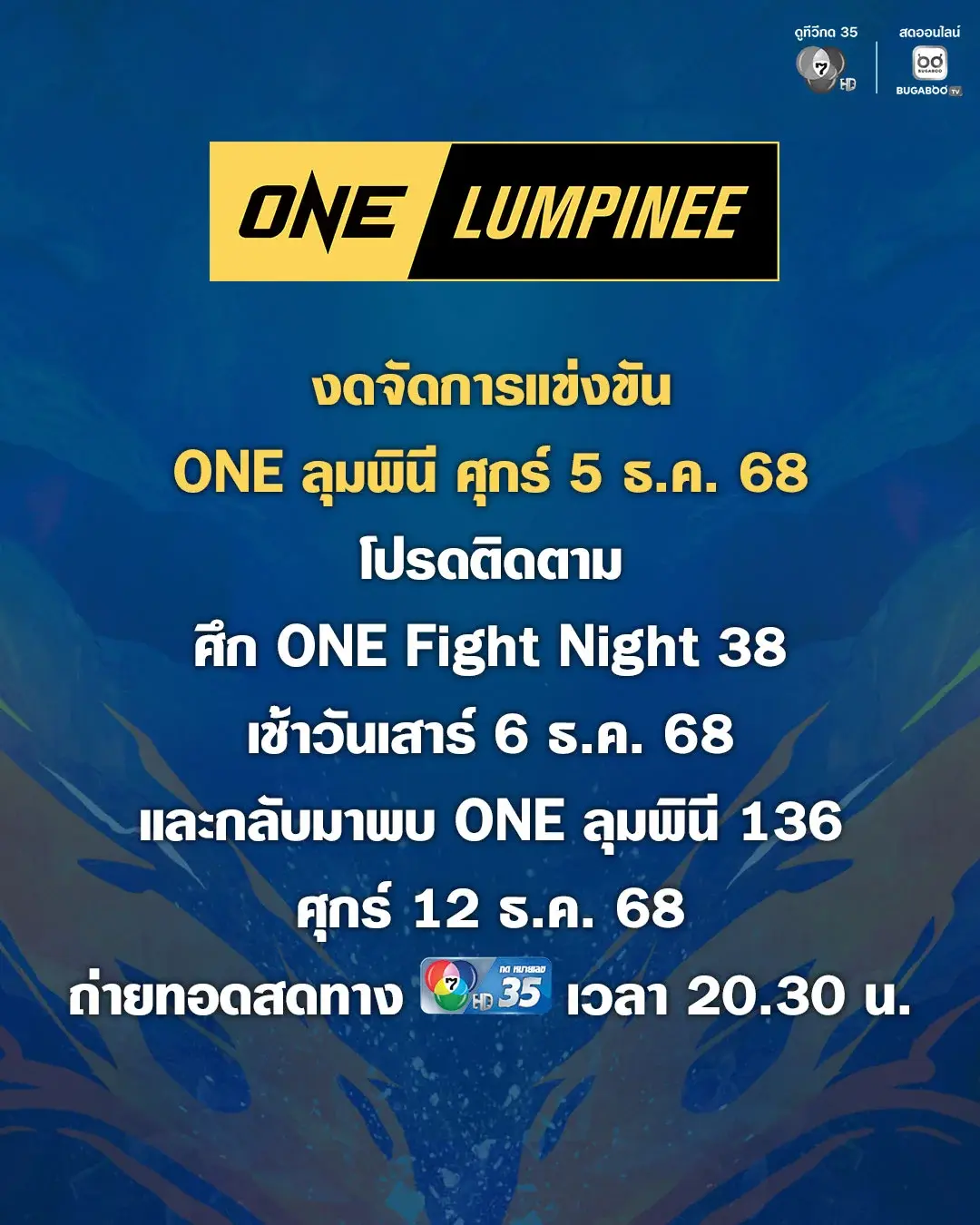 #งดจัดการแข่งขัน 🥊ONE ลุมพินี ศุกร์ 5 ธ.ค. 68 นี้‼️