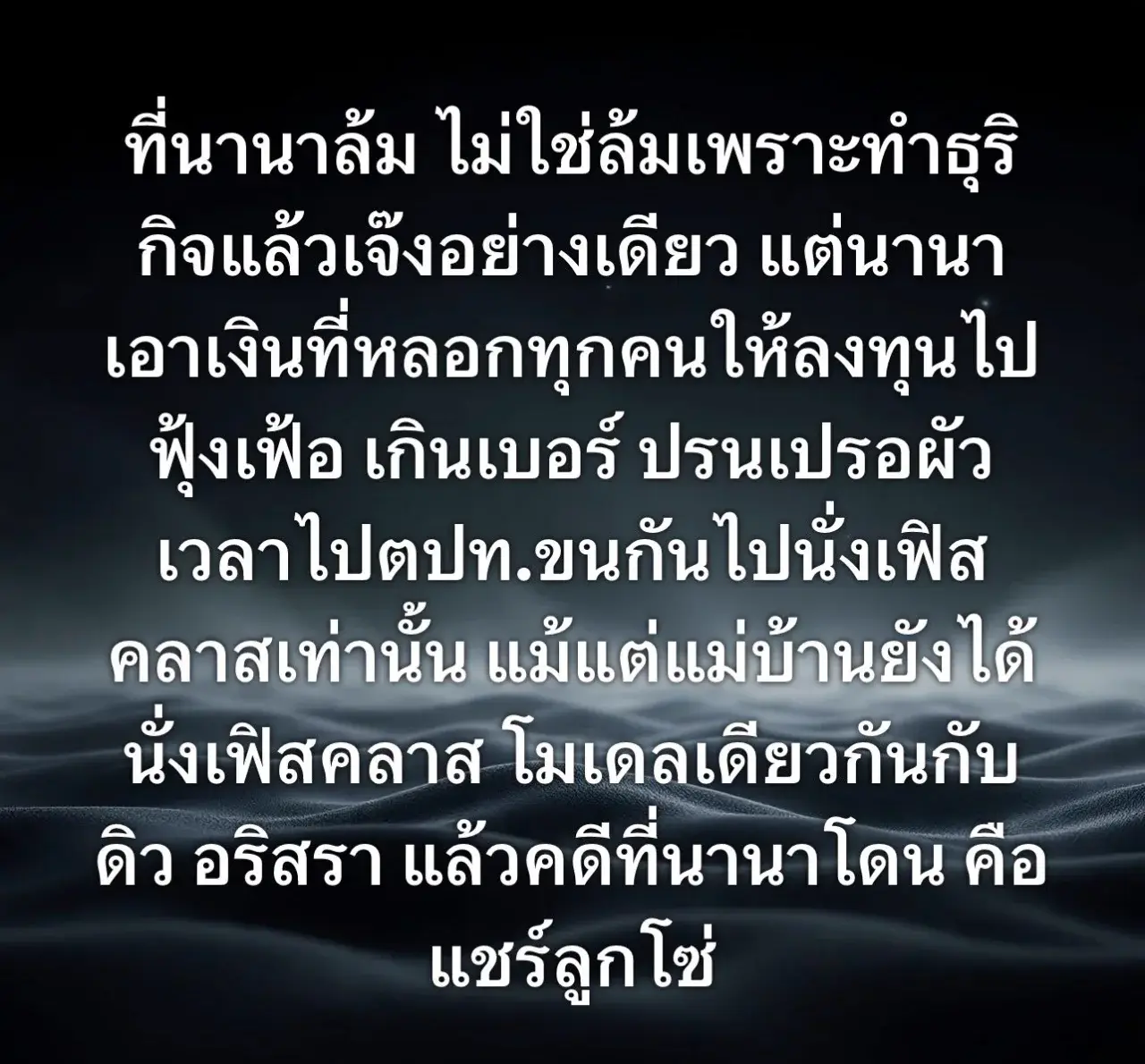 หลังจาก นานา ไรบีนา ภรรยาของ เวย์ ไทยเทเนี่ยม ถูกแฉหนักว่าหลอกเอาเงินเพื่อนฝูงและคนรู้จักมาลงทุนธุรกิจ จนมียอดความเสียหายทะลุ กว่า 400 ล้านบาท