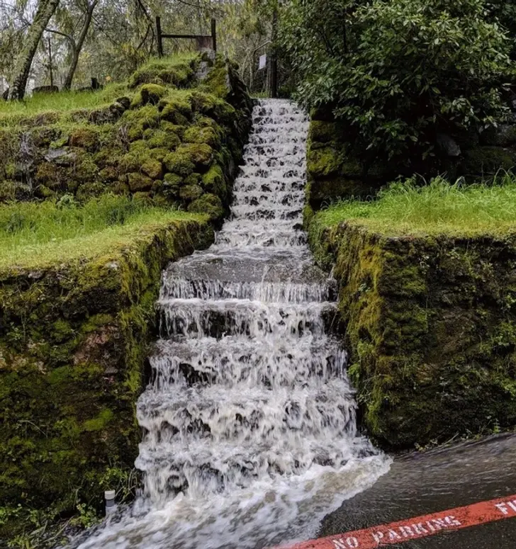 10. ฝนที่ตกหนักเปลี่ยนขั้นบันไดให้กลายเป็นธารน้ำตกที่สวยงาม
