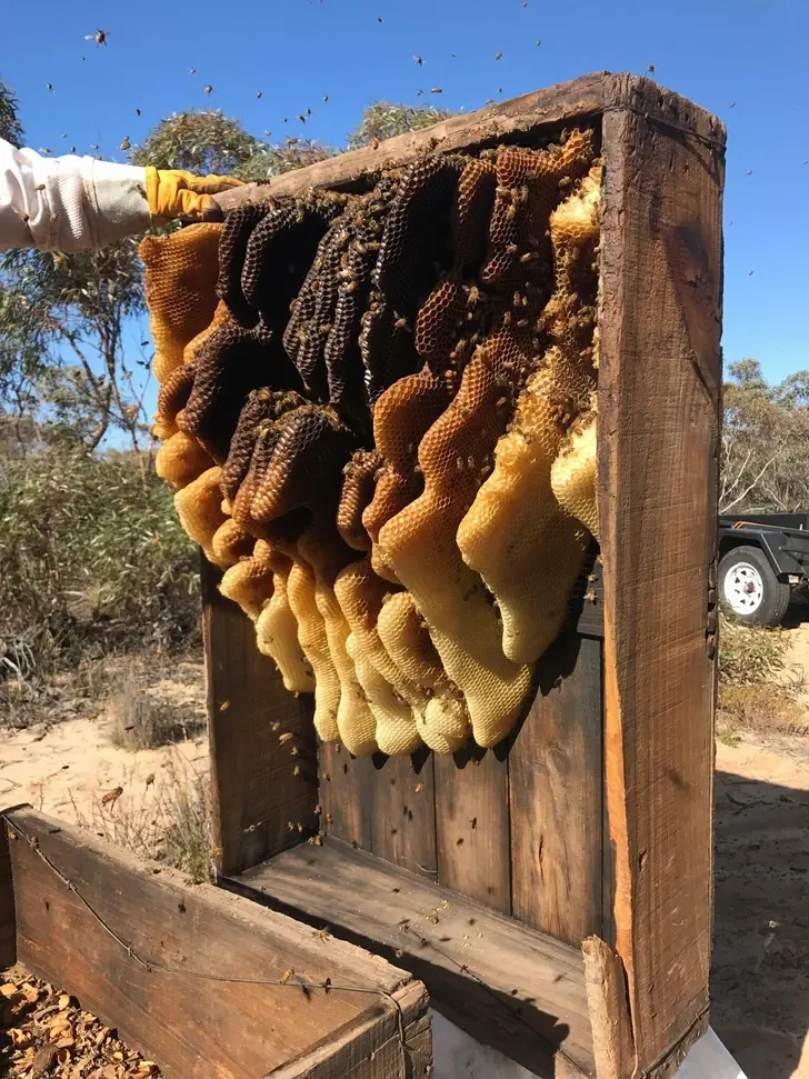 14. ฉันกับพ่อเจอรังผึ้งขนาดใหญ่อันงดงามนี้อยู่ในลังไม้ที่เราเอาไว้เก็บผลไม้แห้ง