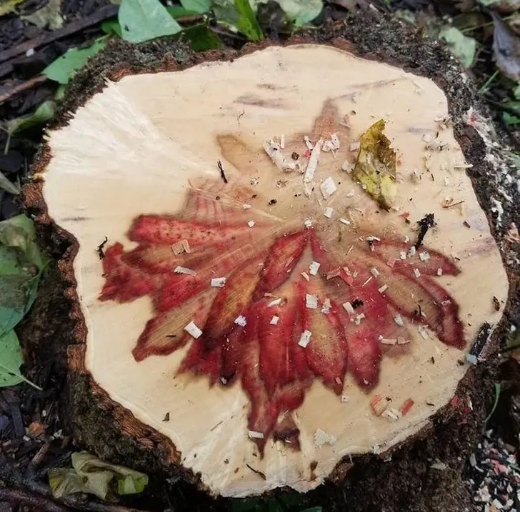 16. เพื่อนบ้านผมตัดต้นไม้ทิ้งเนื่องจากมันเป็นโรค และมันได้ทิ้งร่องรอยที่งดงามไว้ที่เนื้อไม้ที่อยู่ด้านใน