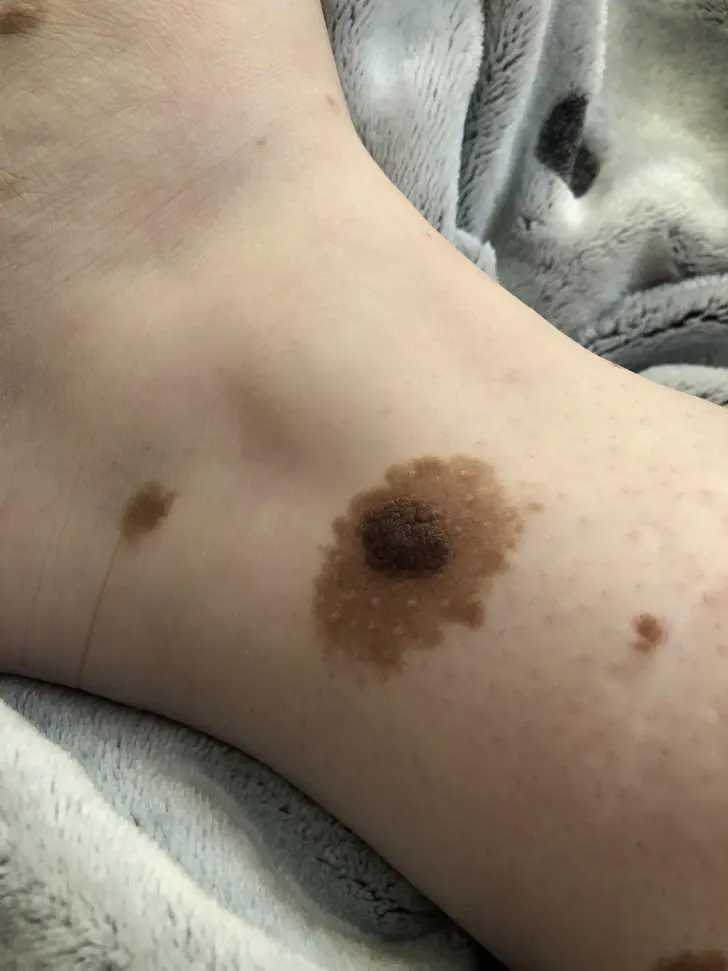 20. ฉันมีไฝขึ้นซ้อนอยู่ในปานที่ข้อเท้าของฉัน