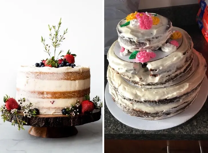18. ภาพซ้ายคือเค้กที่ฉันสั่ง ส่วนภาพขวาคือของจริงที่มาส่ง ฉันจ่ายเงินไป 4,800 บาท เพื่อซื้อเค้กเยิน ๆ ชิ้นนี้มาเนี่ยนะ!?