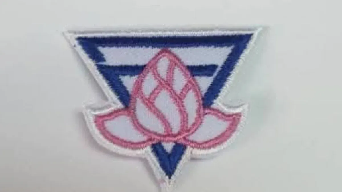 เครื่องหมาย ดังกล่าวคือ รูปดอกบัว ใช้ไหมสีชมพู ปักทับตัวอักษร อ. ใช้ไหมสีน้ำเงิน ปักบนกระเป๋าเสื้อเครื่องแต่งกาย โดยมีความหมายอันลึกซึ้งดังนี้: