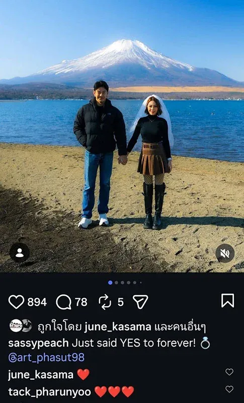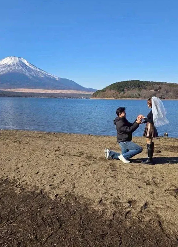 หวานจนภูเขาไฟยังอาย! ‘อาร์ต พศุตม์’ คุกเข่าขอแต่งงานกลางฟูจิ ทำคนทั้งเน็ตฮือฮา”