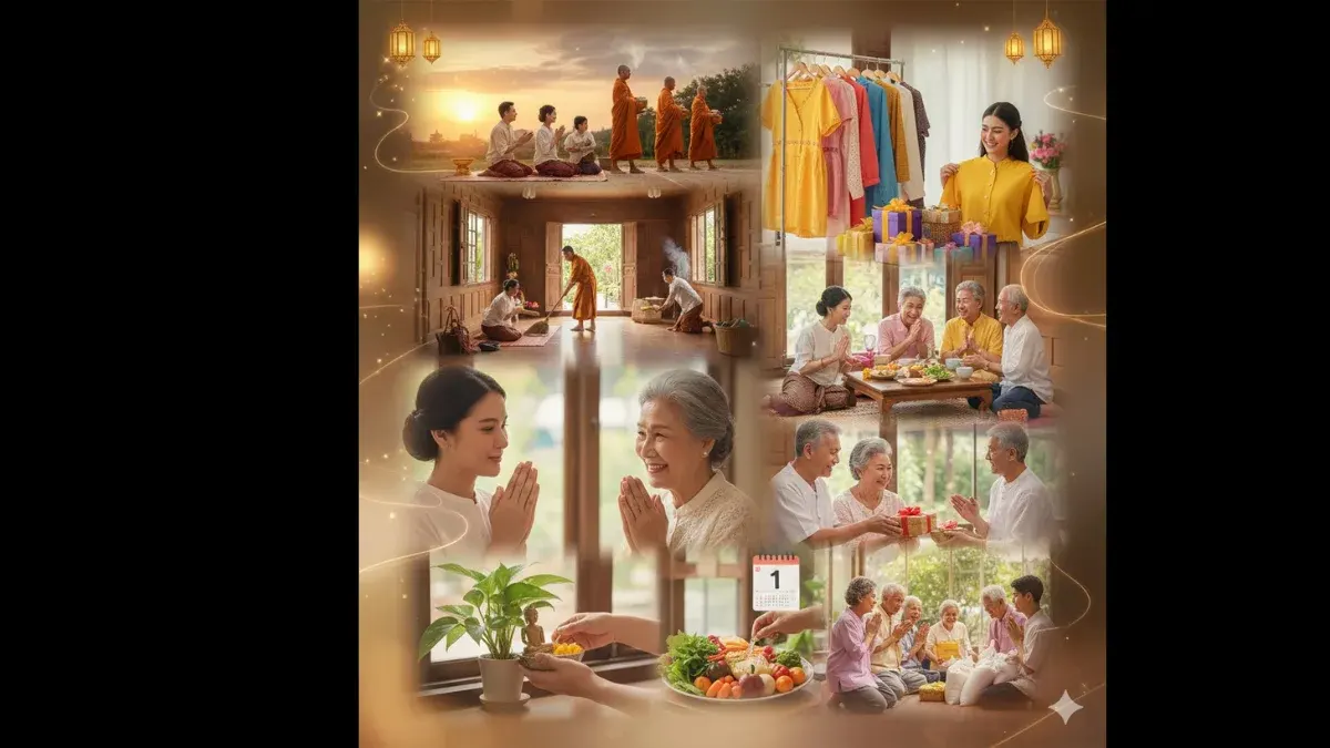 สิ่งที่ควรทำ: เตรียมน้ำหอมหรือดอกไม้ไปสรงน้ำพระพุทธรูปที่บ้านหรือวัด และก้มกราบขอพรจากพ่อแม่ ปู่ย่าตายาย หรือผู้ใหญ่ที่นับถือ