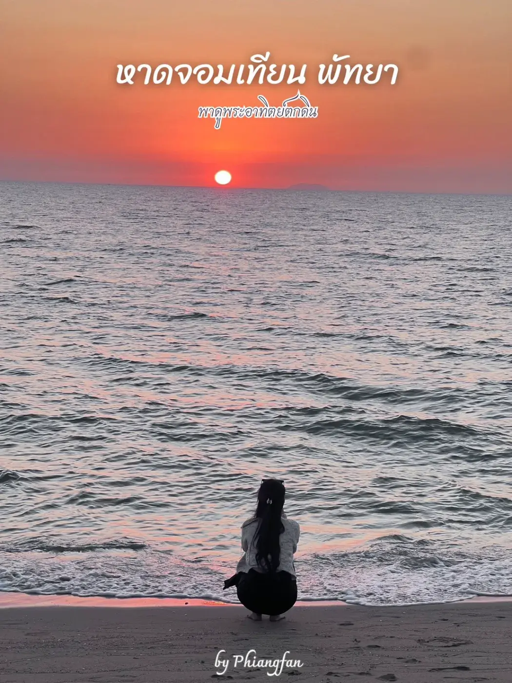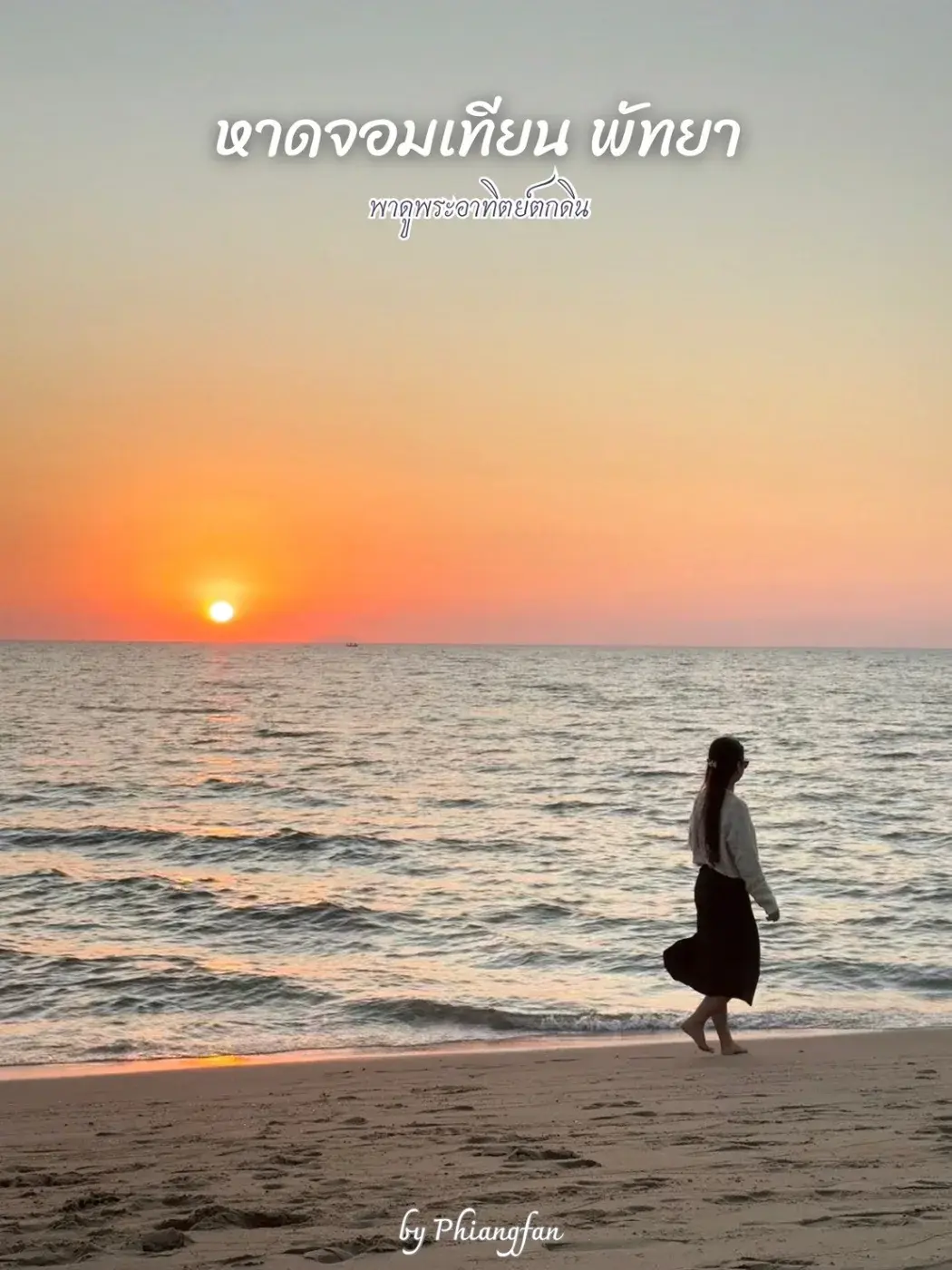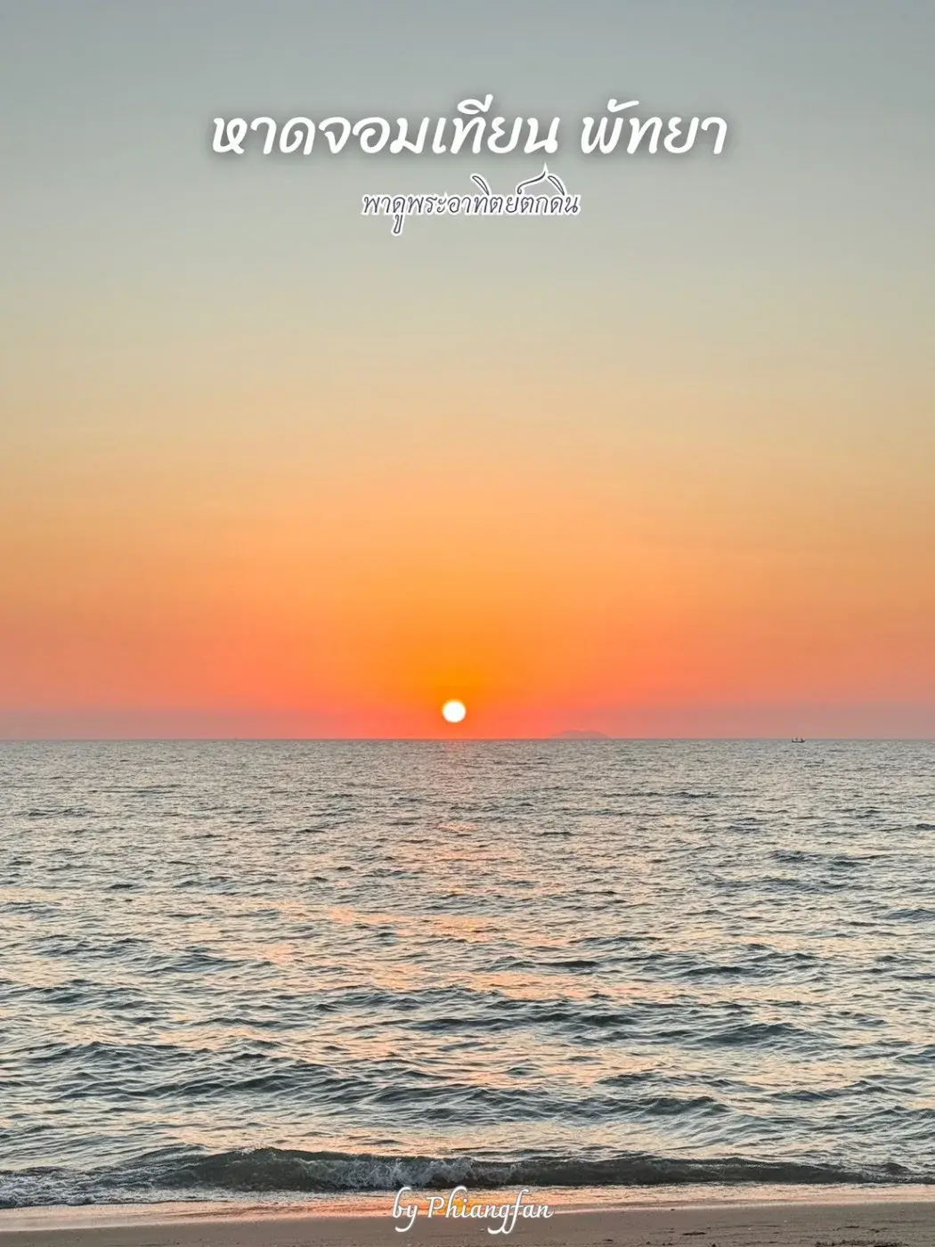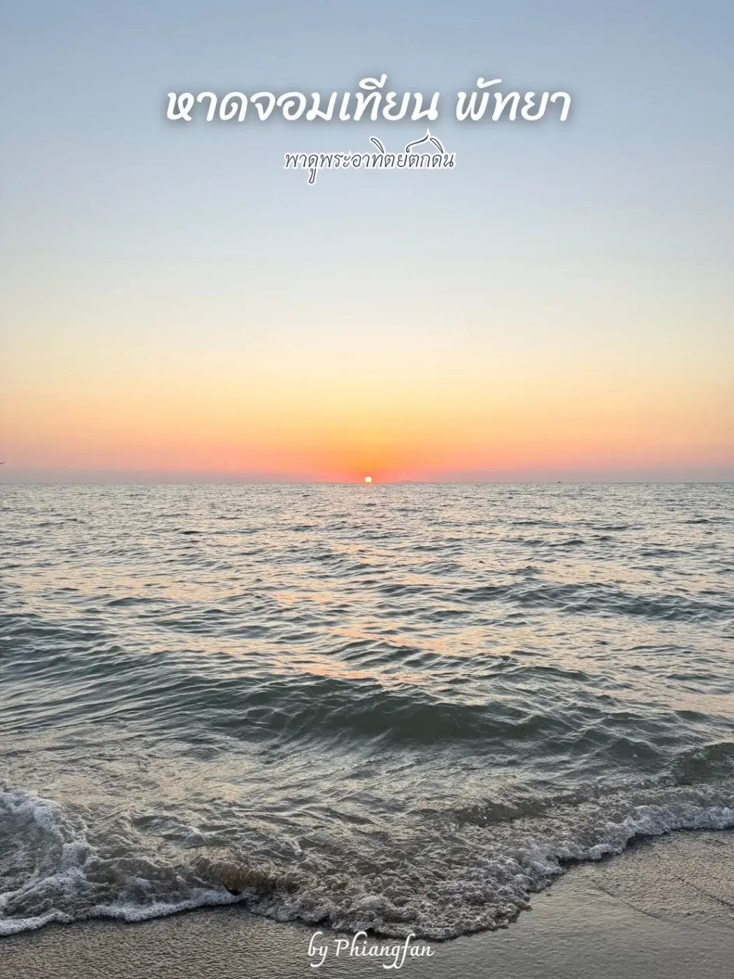ถ่ายรูปตอนพระอาทิตย์ตกดินที่หาดจอมเทียน พัทยา ได้รูปสวยมาก เห็นไหมค่ะ แสงพระอาทิตย์ที่กำลังลับขอบฟ้า และแสงที่สะท้อนไปยังผิวน้ำ สวยสะกดตามาก