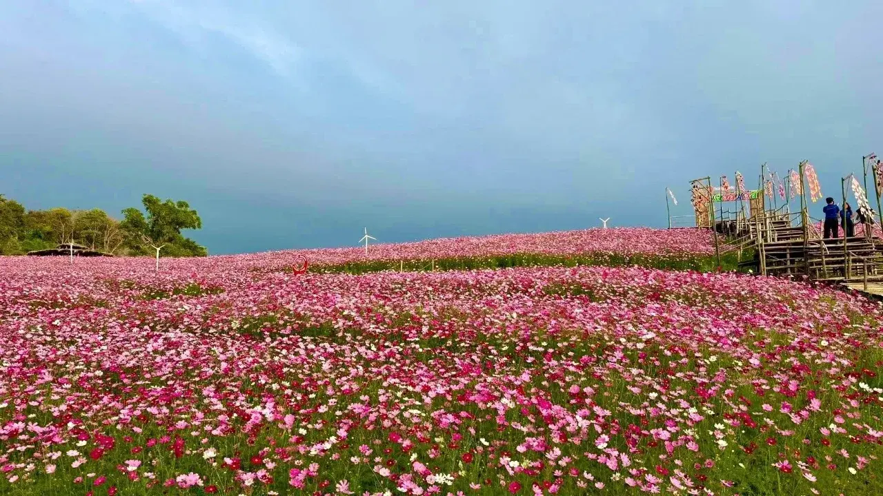 ตอนแรกที่มองนั้นเหมือนว่ามีกังหันที่หมุนเพื่อที่จะสร้างในส่วนของพลังงานแสงอาทิตย์ พุ่มสวยงามมาก ดอกกระจาย ทุ่งคอสมอส ซับสะเลเต เป็นชื่อของดอกไม้ หากว่าเรานั้นมองไปใกล้เราจะเห็นการไล่สี จากสีชมพูเข้มไล่ไปจนถึงในส่วนของสีชมพูอ่อนสวยงาม ใบของมันนั้นเล็กมากเหมือนใบสนหากว่าเรานั้นมอง หากดอกไม้นั้นมารวมกันจำนวนมาก จากกลิ่นหอมเล็กน้อยนั้นกลายเป็นกลิ่นหอมที่ไม่ว่าจะอย่างไรนั้นจะคงติดในส่วนของปลายจมูกเรานั้นตลอด