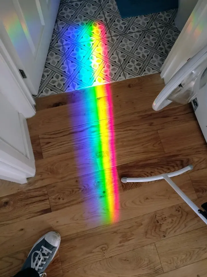 4. ความเข้มของสีรุ้งที่เกิดจากการหักเหของแสงที่ส่องผ่านตู้ปลาของฉัน