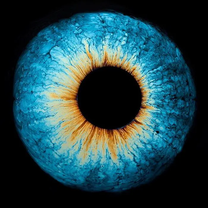 18. นี่ไม่ใช่ดวงตาของสิ่งมีชีวิตใด แต่มันเกิดจากการหยดน้ำมันเบนซินลงบนน้ำ